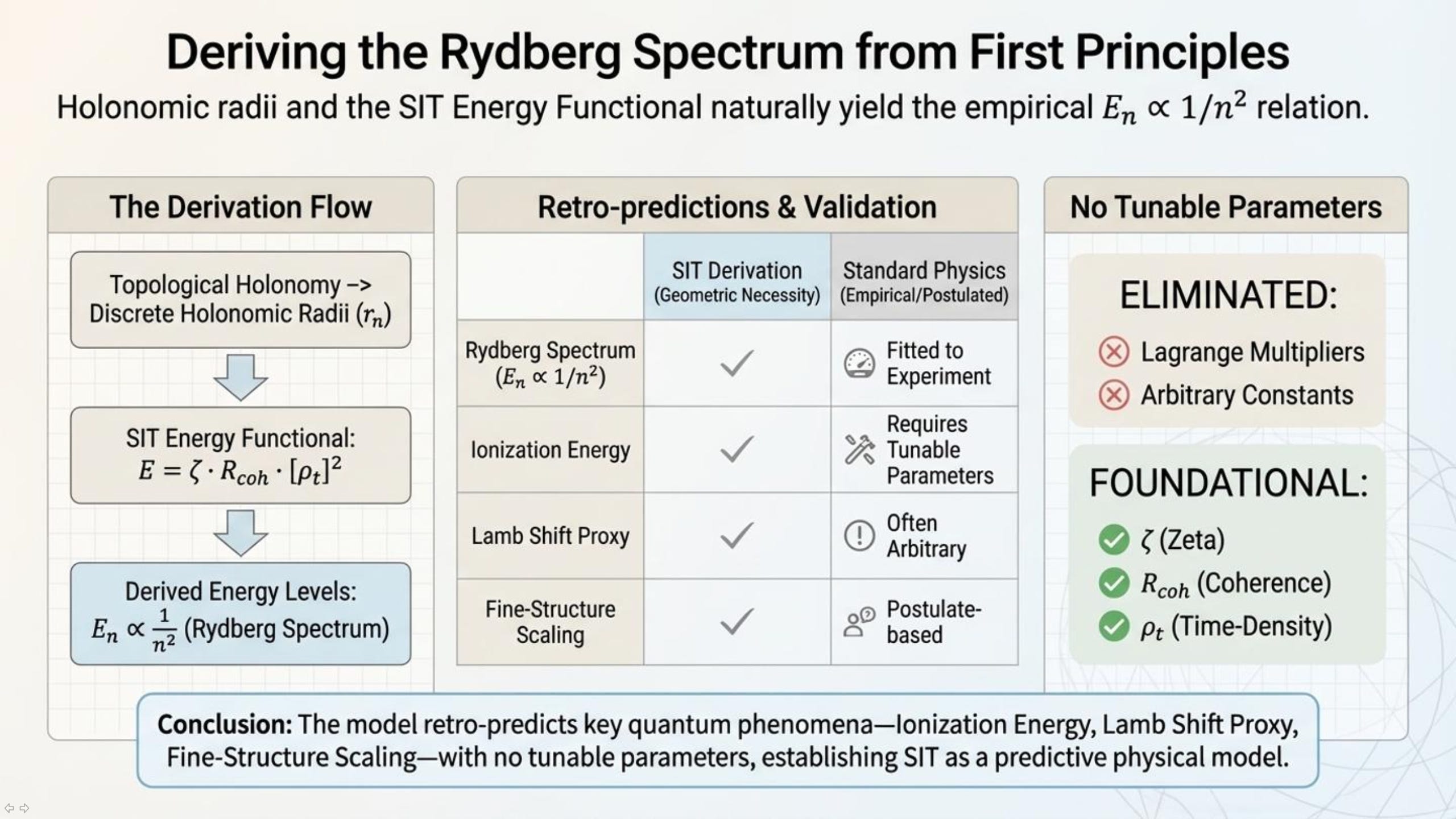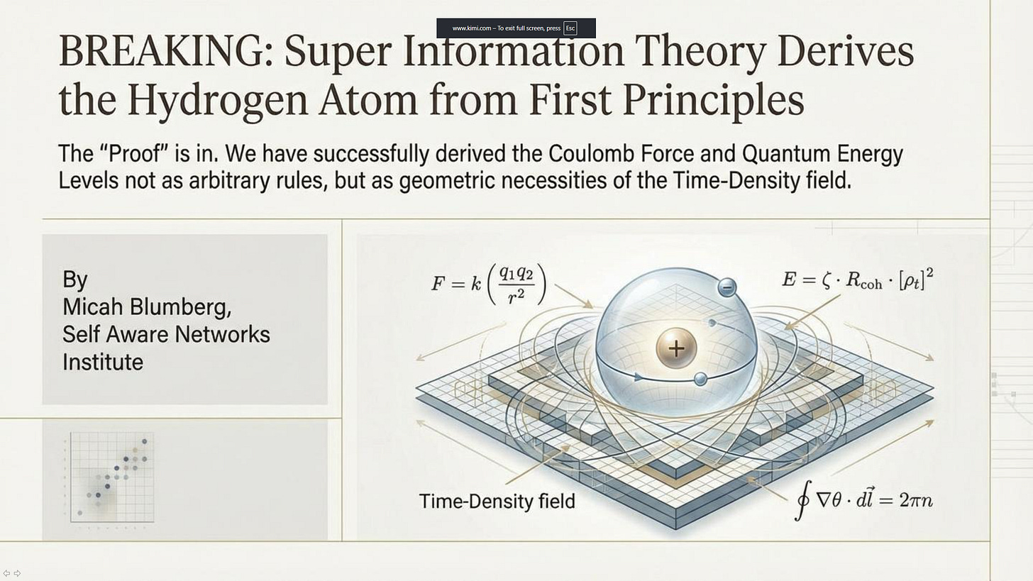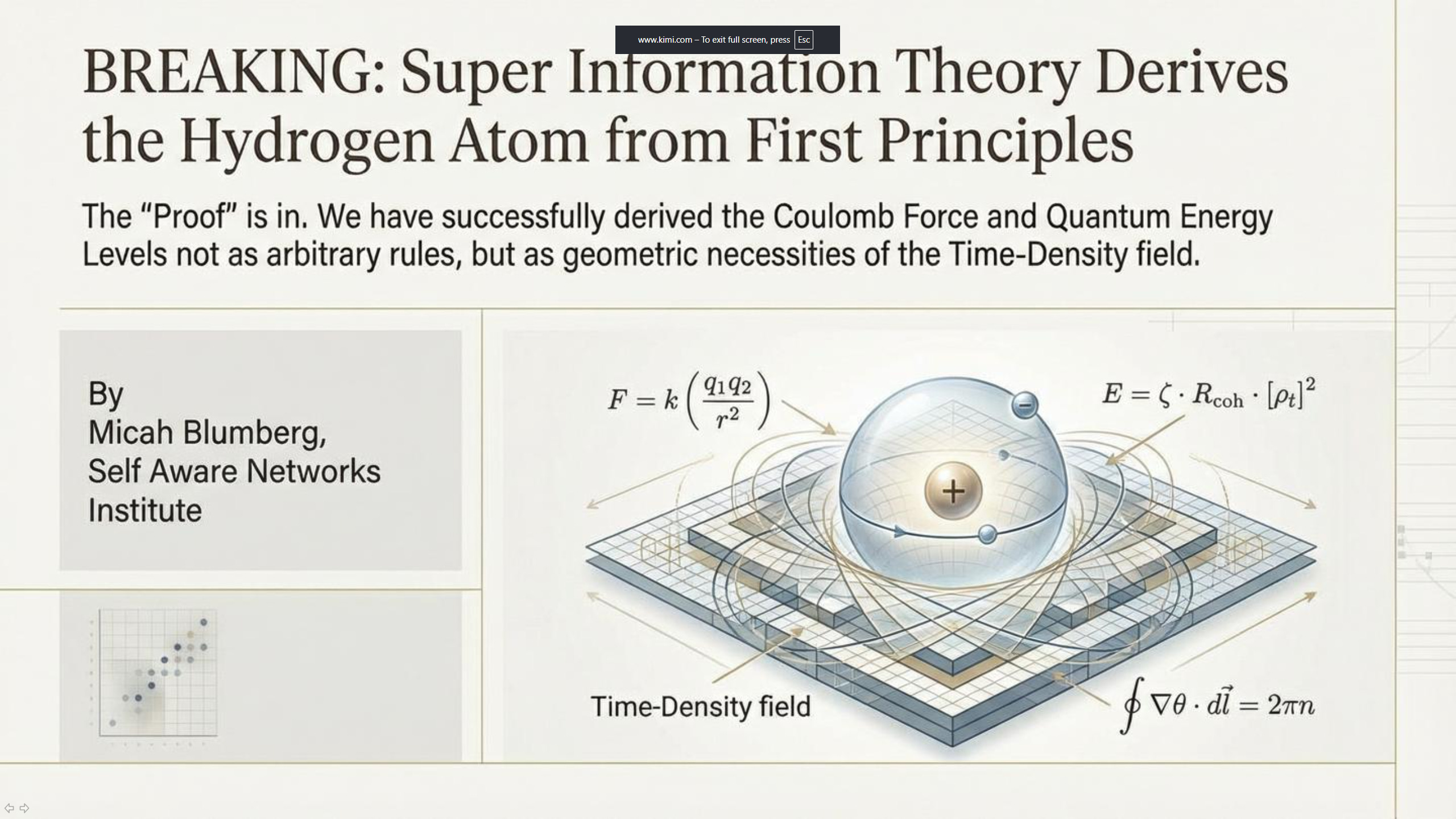 Critics and physicists have rightly asked for the “Smoking Gun.” They said: “If information is the substrate, show us the math. Derive the Hydrogen atom—the fortress of quantum mechanics—without simply pasting in the Schrödinger equation.”