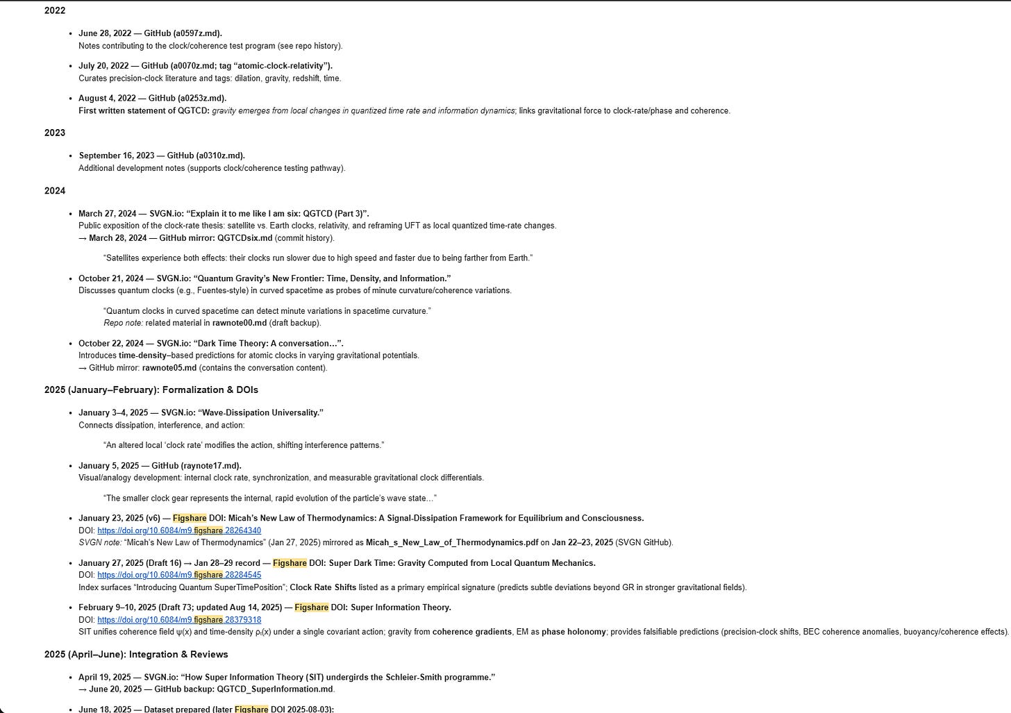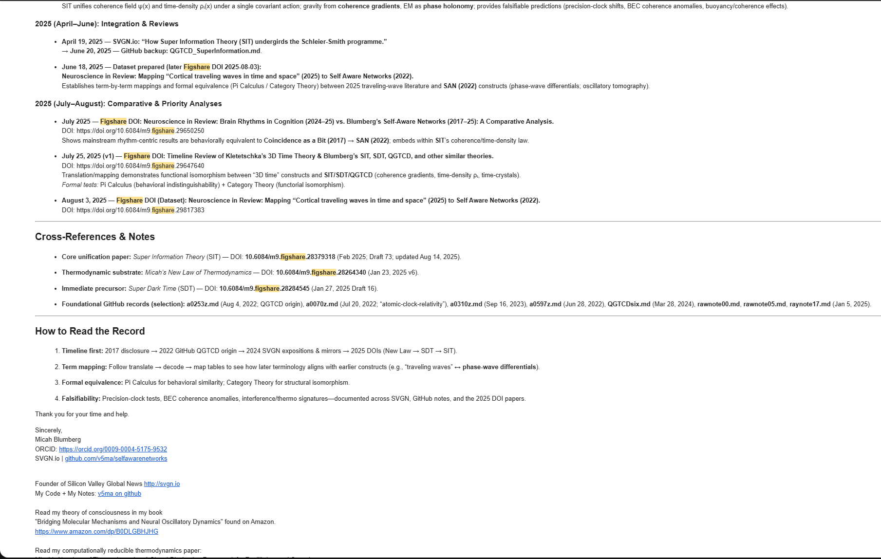 Key evidence that Super Information Theory, Super Dark Time, and Micah’s New Law of Thermodynamics were published on figshare in the period between January & March 2025 can be found on Orch ID, and on the Wayback Machine.