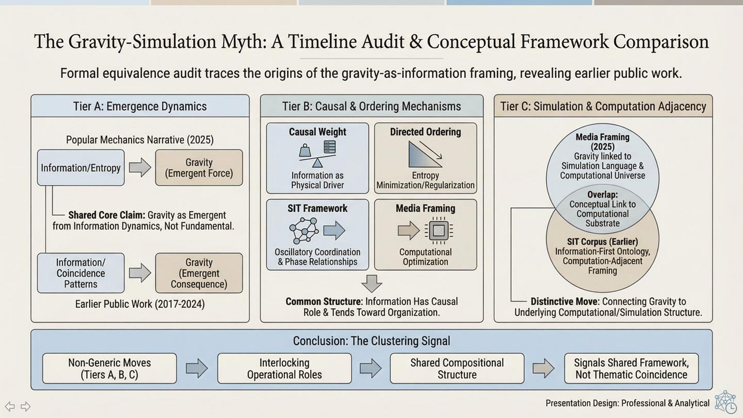 What the article did not mention is that this same gravity-as-information framing—treating gravity as an emergent consequence of informational organization, optimization, or compression rather than a purely fundamental force—had already been publicly developed and released years earlier in multiple stages across openly accessible publications.