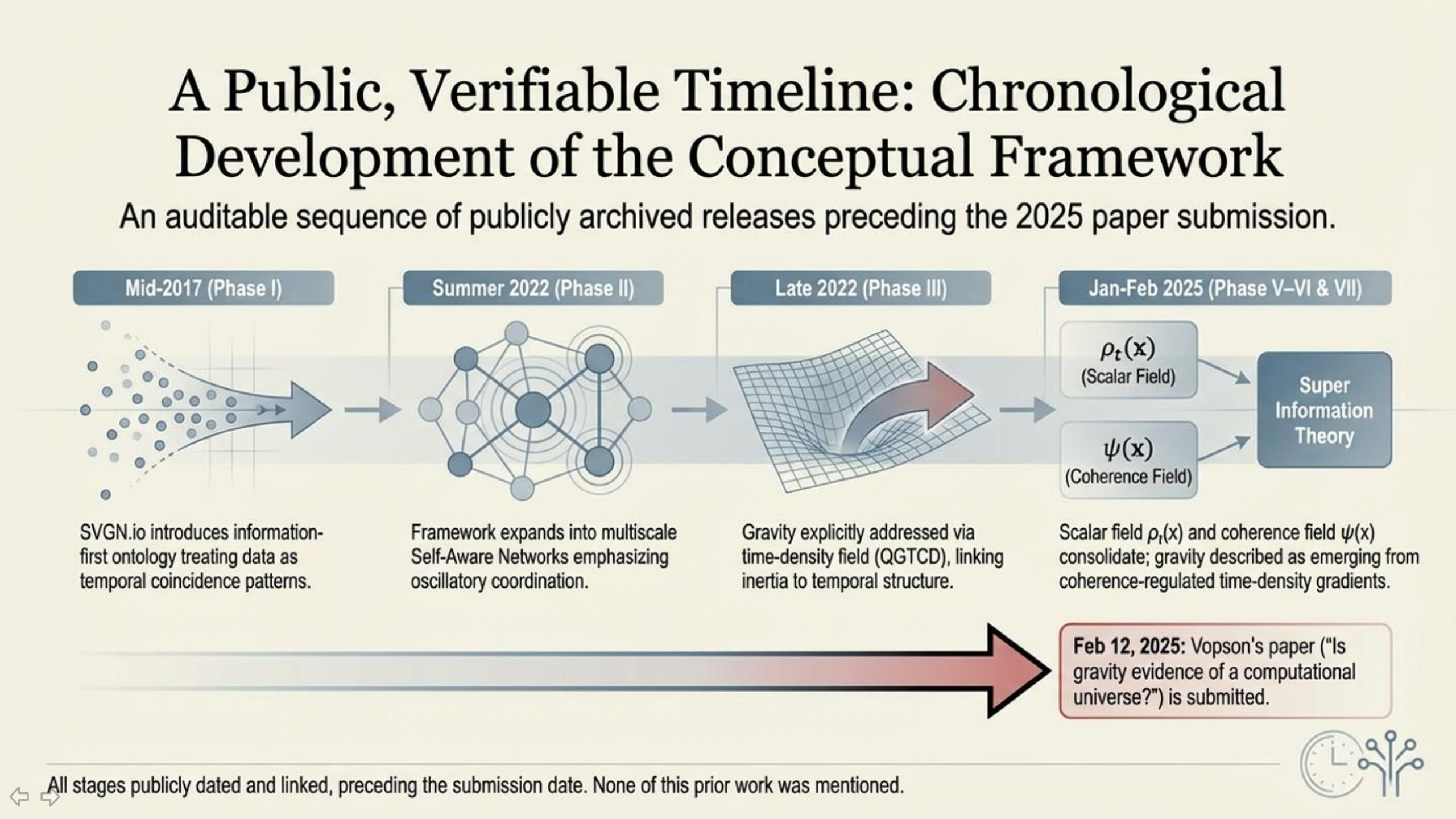 The Public Timeline: That Super Information Theory (SIT) established the core mechanisms years prior to Vopson’s media cycle.