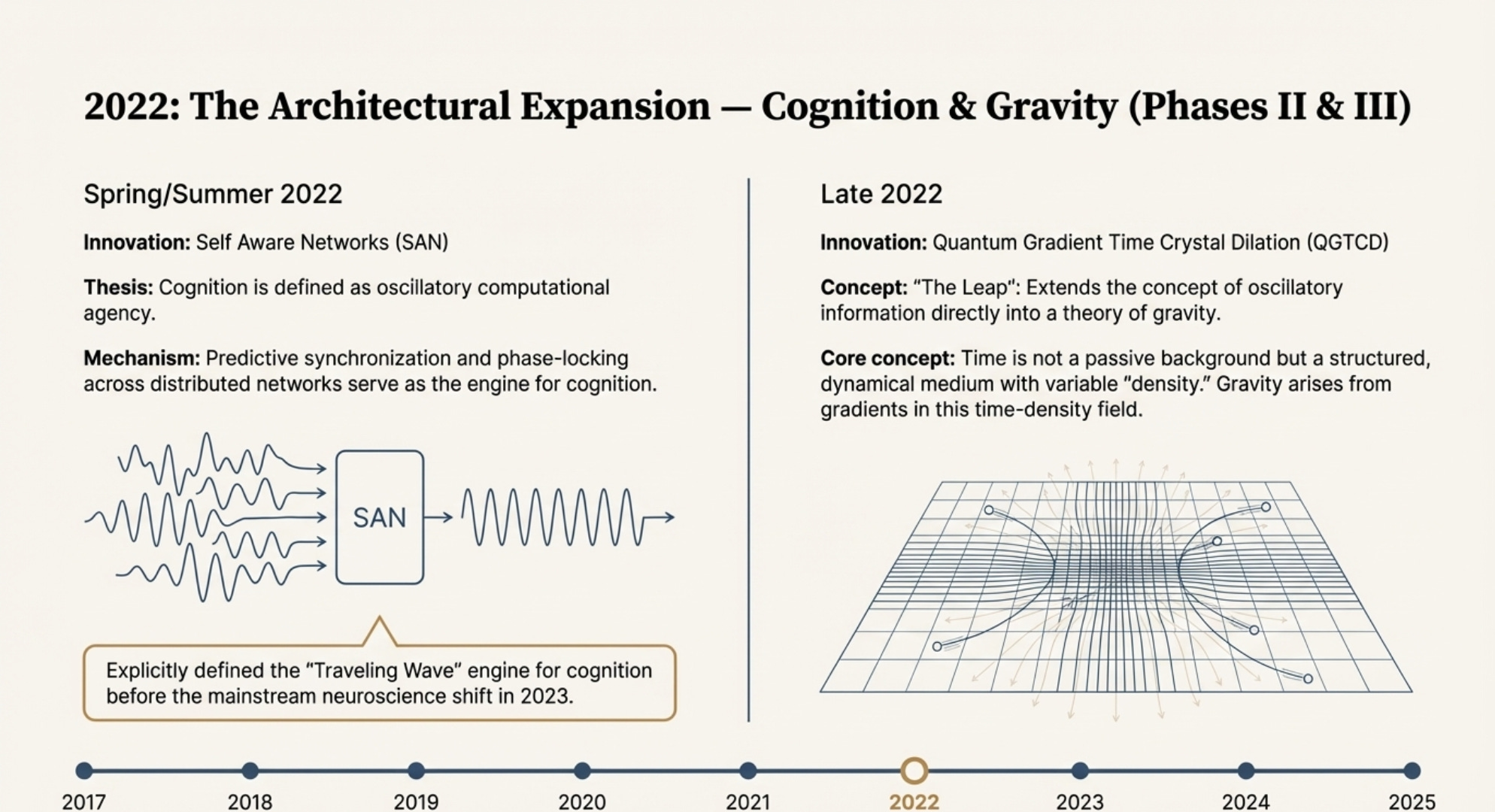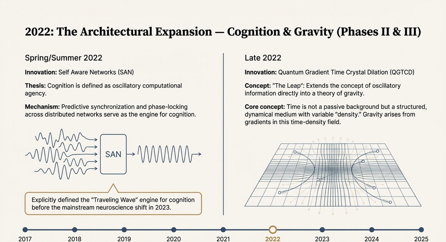 Later in 2022, the oscillatory framework was extended into fundamental physics with the introduction of Quantum Gradient Time Crystal Dilation (QGTCD). The decisive