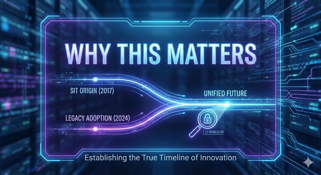 The Receipts: An exhaustive appendix aggregating independent timestamps (Wayback Machine, GitHub, DOIs) that clarify the distinction between the original SIT framework and the subsequent parallel works appearing today.